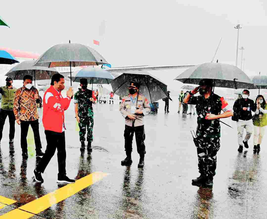 Usuai agenda acara peresmian Tol Manado-Bitung Presiden didampingi Gubernur Sulut dan rombongan menuju lokasi vaksinasi di Pelabuhan Petikemas Bitung.
