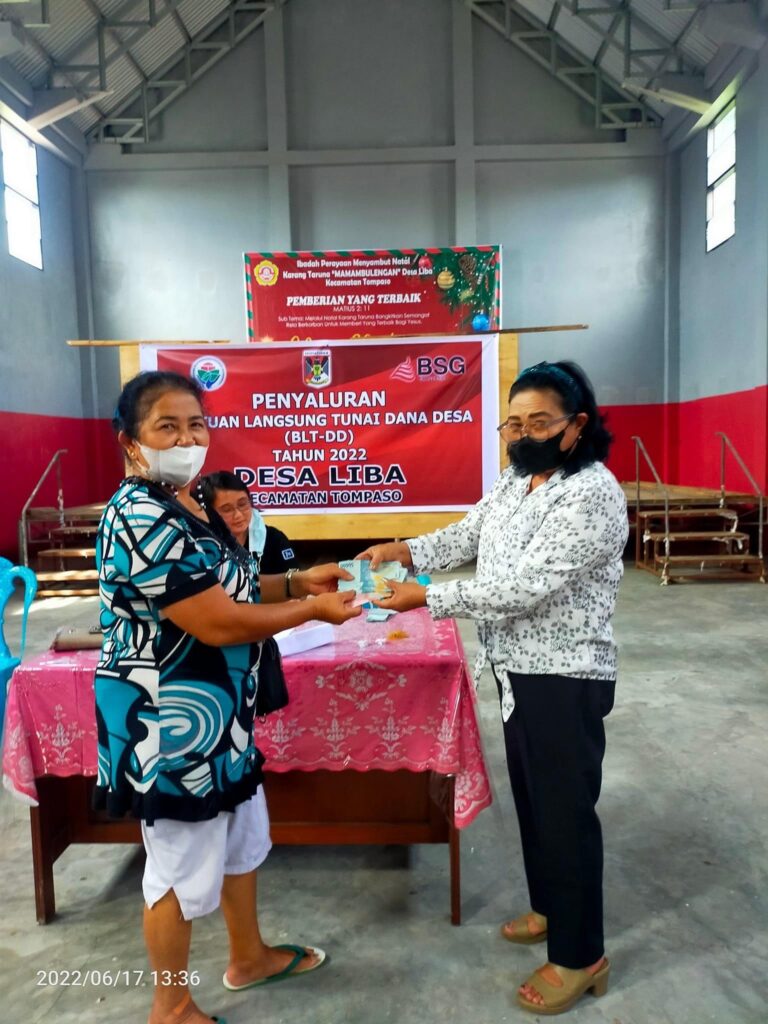 Penyaluran BLT kepada 106 KPM ini berlangsung di Balai Serbaguna Desa Liba, Jumat 17 Juni 2022. Penyaluran tersebut dihadiri oleh Camat Tompaso Barat Stenly Umbo.