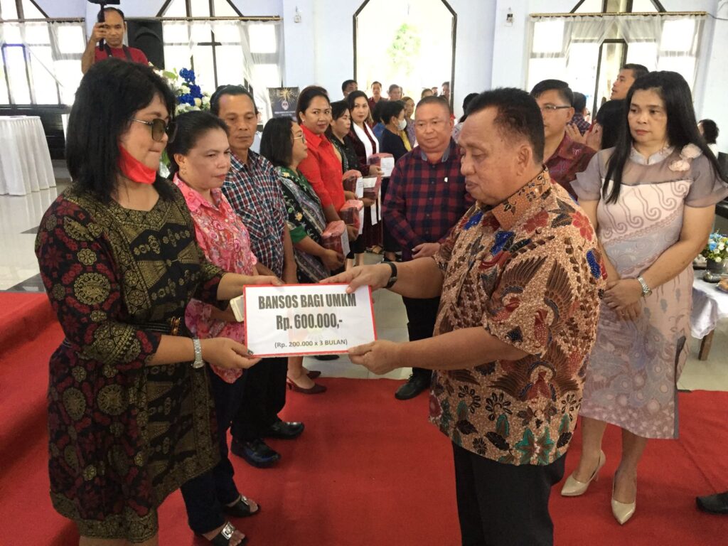 Adapun paket bantuan tersebut diserahkan secara simbolis yang terdiri dari, Bantuan Sosial sembako. Penerima upah kerja program padat karya, bansos UMKM Rp 600.000 untuk tiga bulan. Serta penyerahan bantuan untuk kecamatan Pineleng 1 sachet berisi 1.500 benih dan 1.350 lembar polibek, kecamatan Tombulu 2 sachet dan 2.677 lembar, tombariri timur 1 sachet dan 1.350 lembar polibek, tombariri 1 sachet dan 1.350 lembar polibek dan kecamatan mandolang 1 sachet dan 1.350 lembar polibek.