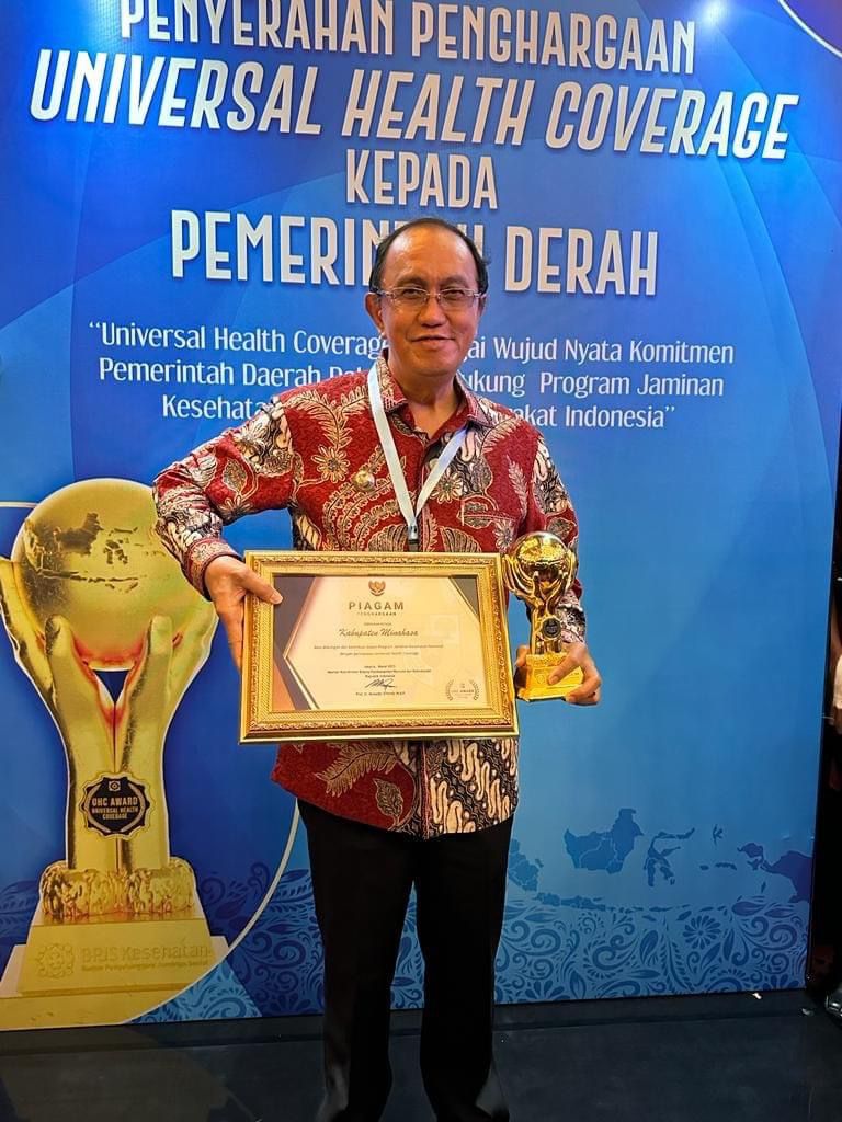 Channelindo.com, MINAHASA – Pemerintah Kabupaten (Pemkab) Minahasa menerima penghargaan Universal Health Coverage dari Badan Penyelenggara Jaminan Sosial (BPJS) Kesehatan.