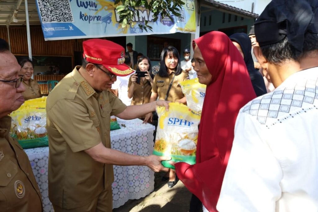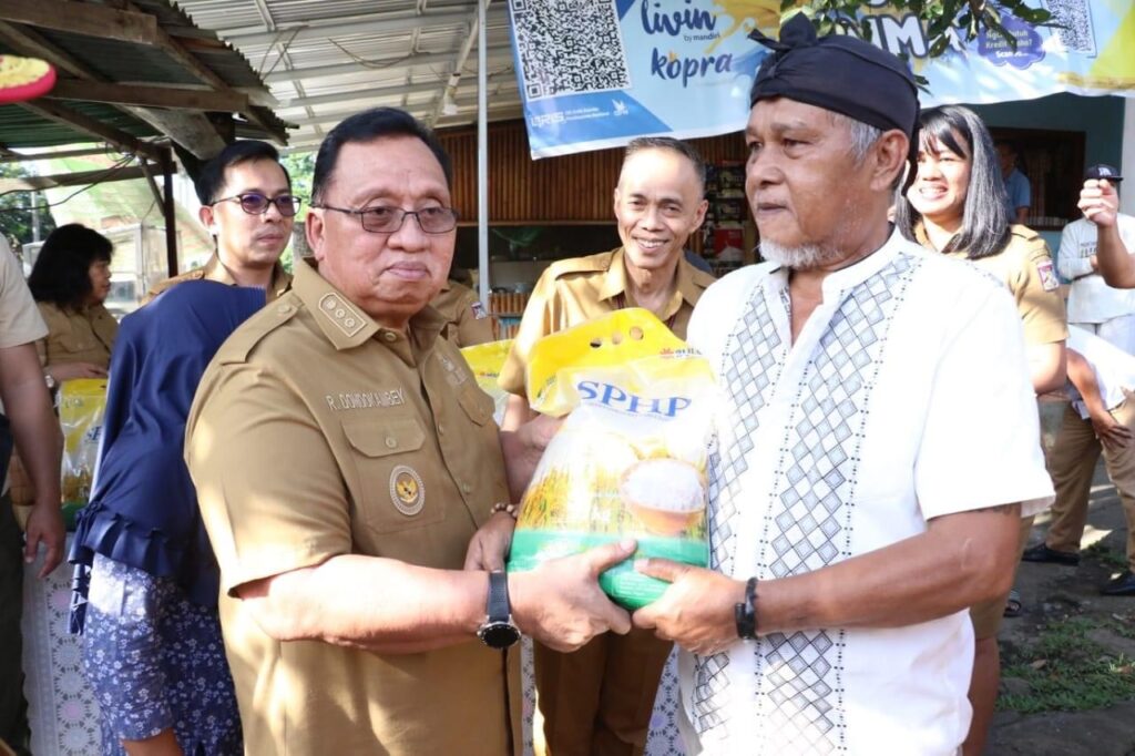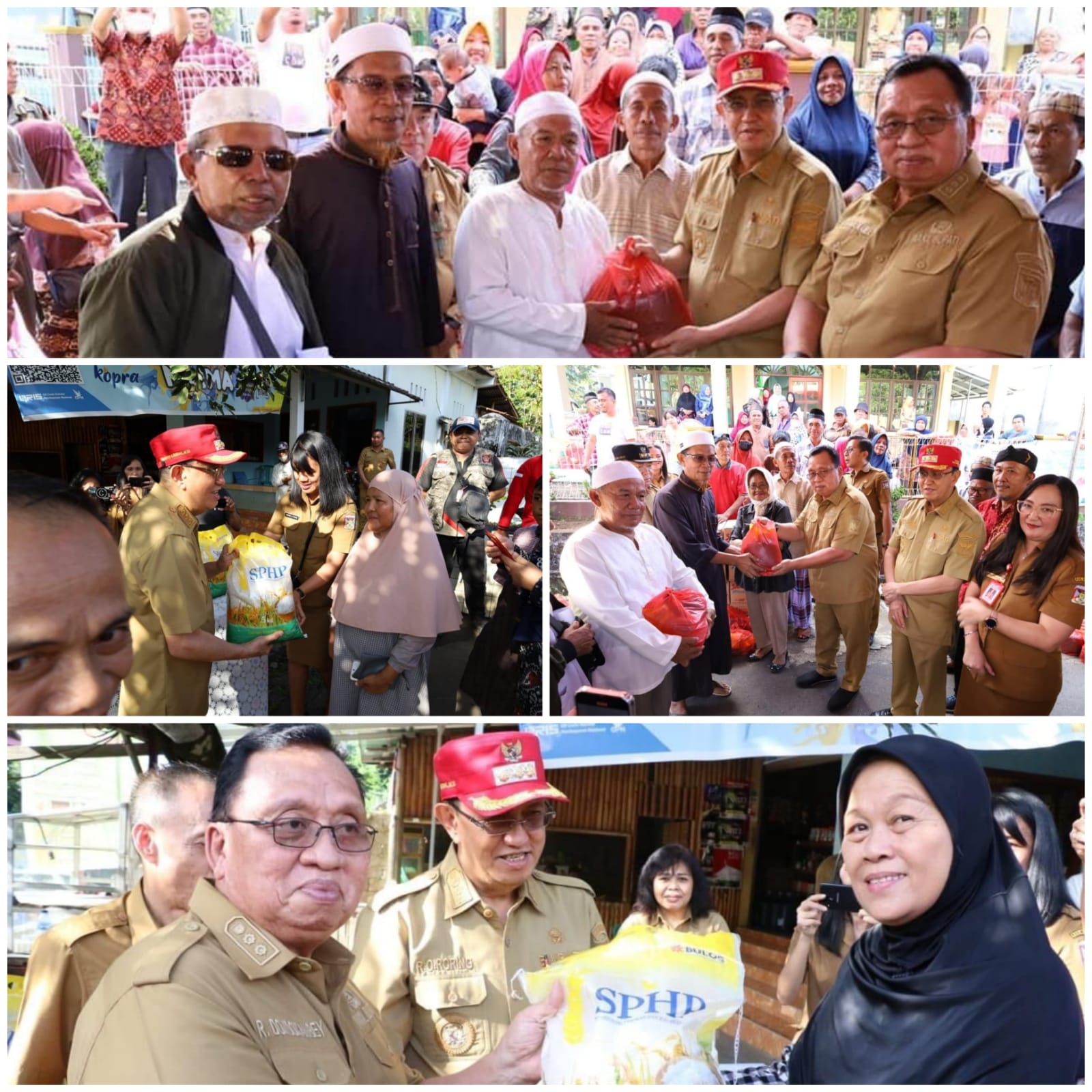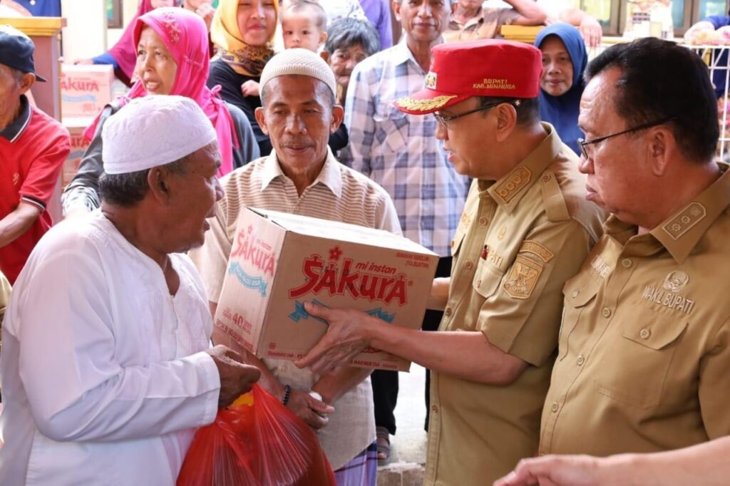 Bupati Royke Octavian Roring (ROR) dan Wakil Bupati Minahasa Robby Dondokambey serahkan paket bantua sembako kepada kaum dhuafa Lansia di Wilayah Kecamatan Pineleng