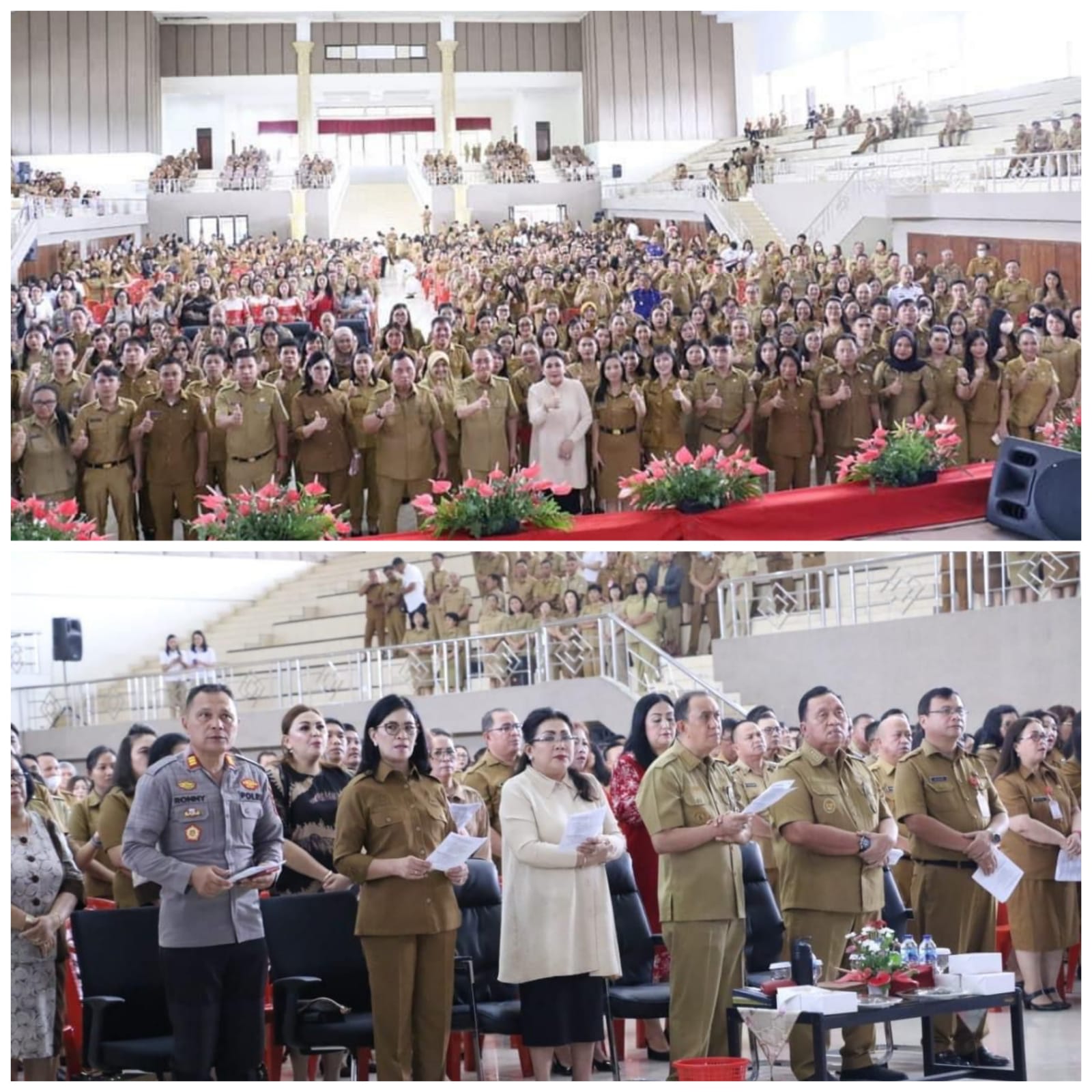 Apel tersebut dipimpin Sekretaris Daerah (Sekda) Dr. Lynda D. Watania, MM, M.Si dan dihadiri oleh Bupati Minahasa Dr. Ir. Royke Oktavian Roring, M.Si (ROR) bersama Ketua TP-PKK Dra. Fenny Ch. M. Lumanauw, S.I dan Wakil Bupati Minahasa Wakil Bupati Minahasa Dr. (H.C). Robby Dondokambey, S.Si, MM, MAP (RD)