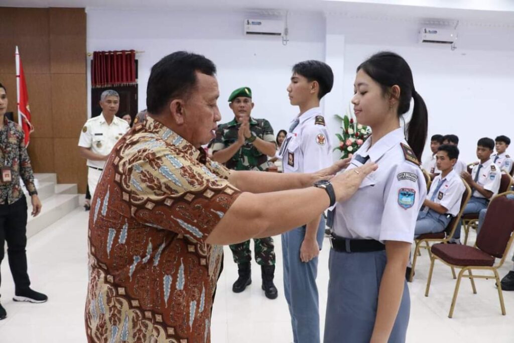 Pemasangan atribut Wabup Robby kepada peserta seleksi paskibraka kabupaten Minahasa