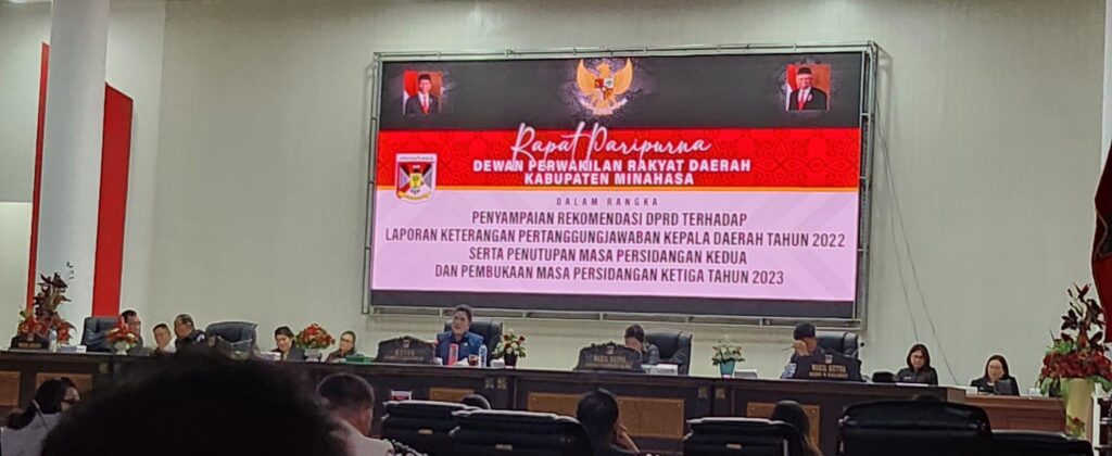 Channelindo.com, MINAHASA – Dewan Perwakilan Rakyat Daerah (DPRD) Kabupaten Minahasa menggelar rapat paripurna. Rapat paripurna terkait penyampaian rekomendasi atas Laporan Keterangan Pertanggung Jawaban (LKPJ) Kepala Daerah Tahun 2022 dipimpin oleh Ketua DPRD Glady Kandouw SE.