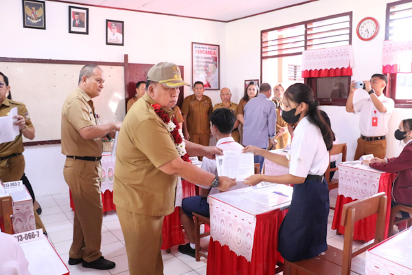 Wabup Robby membuka soal ujian di SMP N 4 Tondano