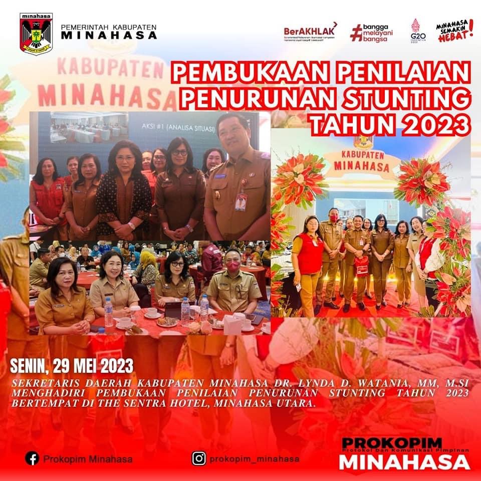 Channelindo.com, MINUT – Sekretaris Daerah (Sekda) Kabupaten Minahasa Lynda Watania ikut menghadiri pembukaan kegiatan Penilaian Hasil Kinerja terhadap 8 Aksi Konvergensi Percepatan Penurunan Stunting Tahun 2023 di Provinsi Sulawesi Utara, yang dilaksanakan di Hotel Sentra, Minahasa Utara (Minut), Senin (29/05/2023).
