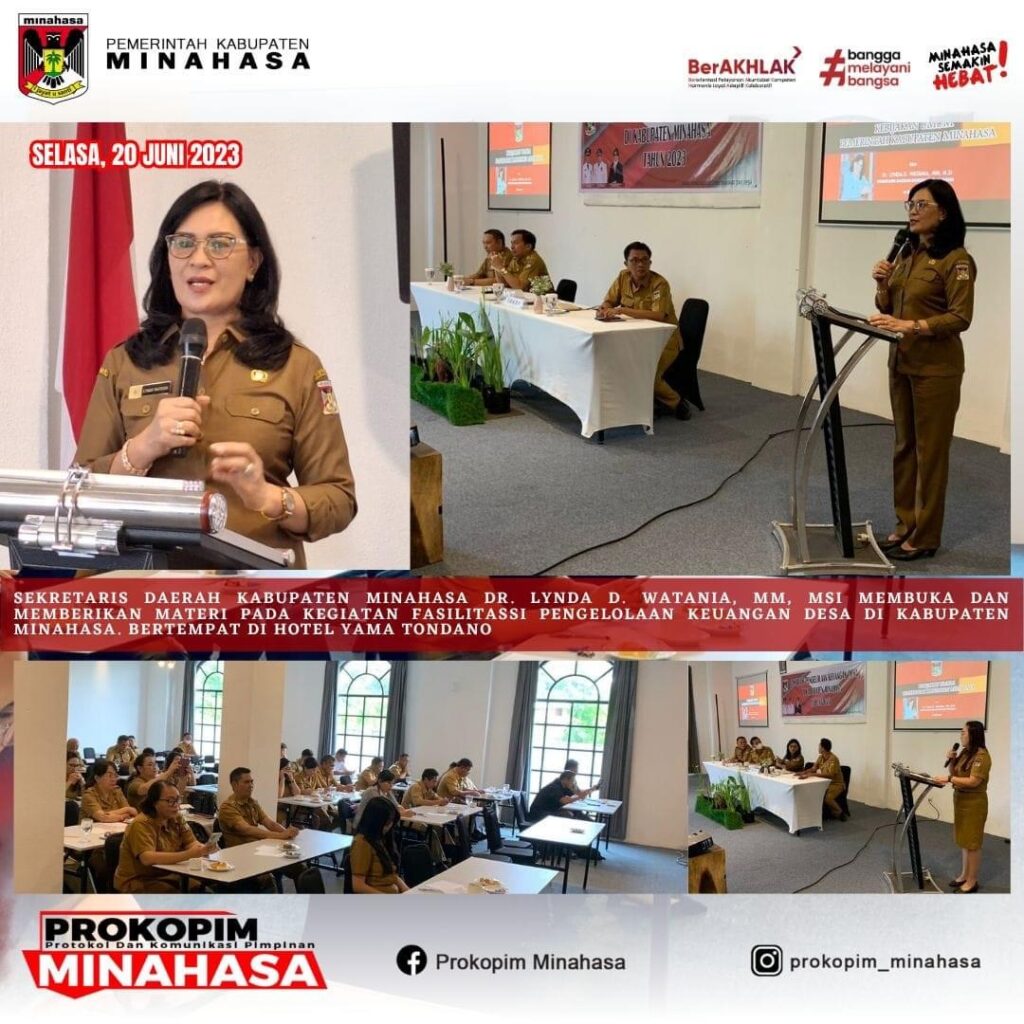 Channelindo.com, MINAHASA – Sekretaris Daerah (Sekda) Kabupaten Minahasa Lynda Watania, membuka kegiatan fasilitasi pengelolaan keuangan desa dan kerja sama desa di Kabupaten Minahasa, tahun 2023, bertempat di Yama Resort, Tondano, Selasa (20/6/23).