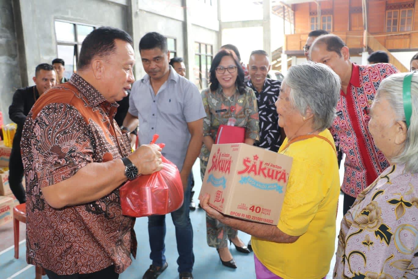 Bansos diserahkan oleh Wakil Bupati Minahasa Robby Dondokambey (RD) di Aula GMIM Torsina Kembes, Kecamatan Tombulu, Kamis 14/9/2023.