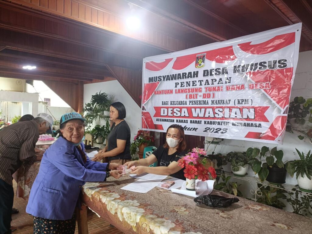 Channelindo.com, MINAHASA – Pemerintah Desa Wasian Kacamatan Kakas Barat, Kabupaten Minahasa Salurkan Bantuan Langsung Tunai (BLT), Kamis 14/12/2023.