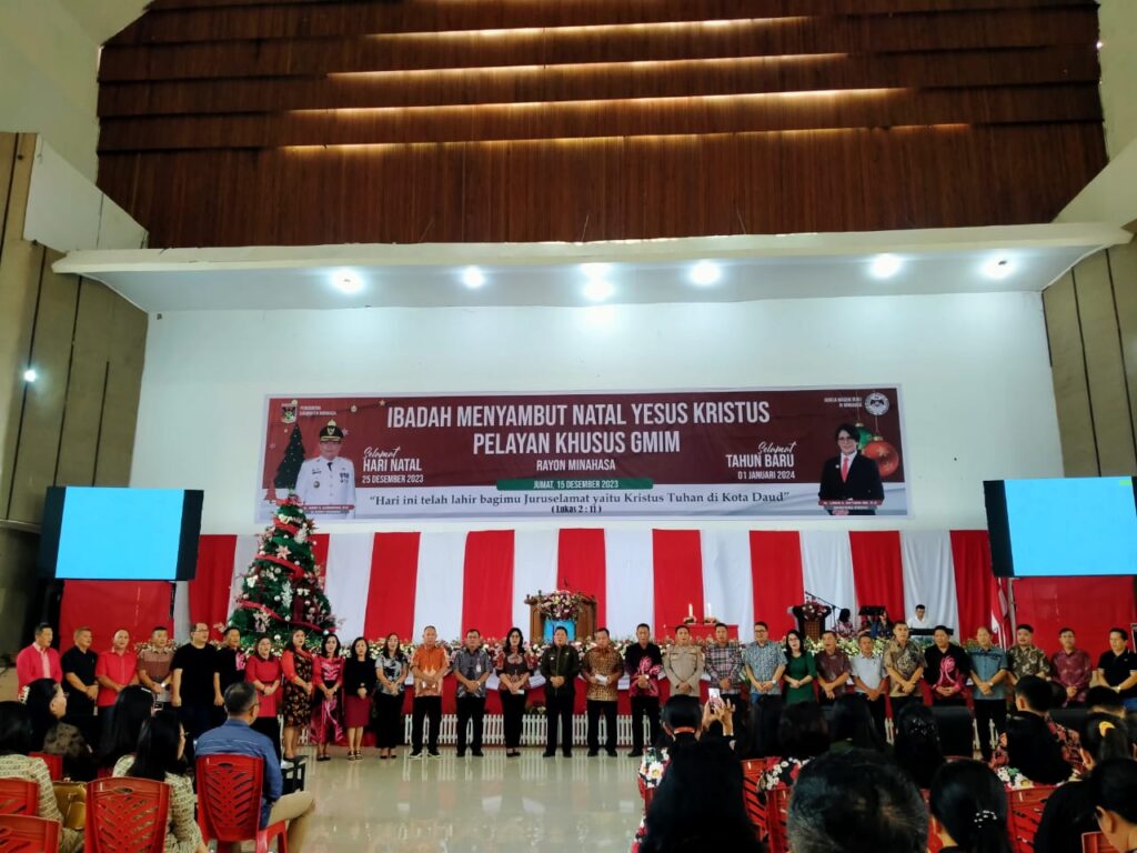 Channelindo.com, MINAHASA – Pelayan Khusus (Pelsus) GMIM Rayon Minahasa menggelar Ibadah dalam menyambut Natal Yesus Kristus, bertempat di Gedung Wale Ne Tou Tondano, Jumat 15/12/2023. Kegairahan tersebut dihadiri Pj Bupati Minahasa Jemmy Kumendong.