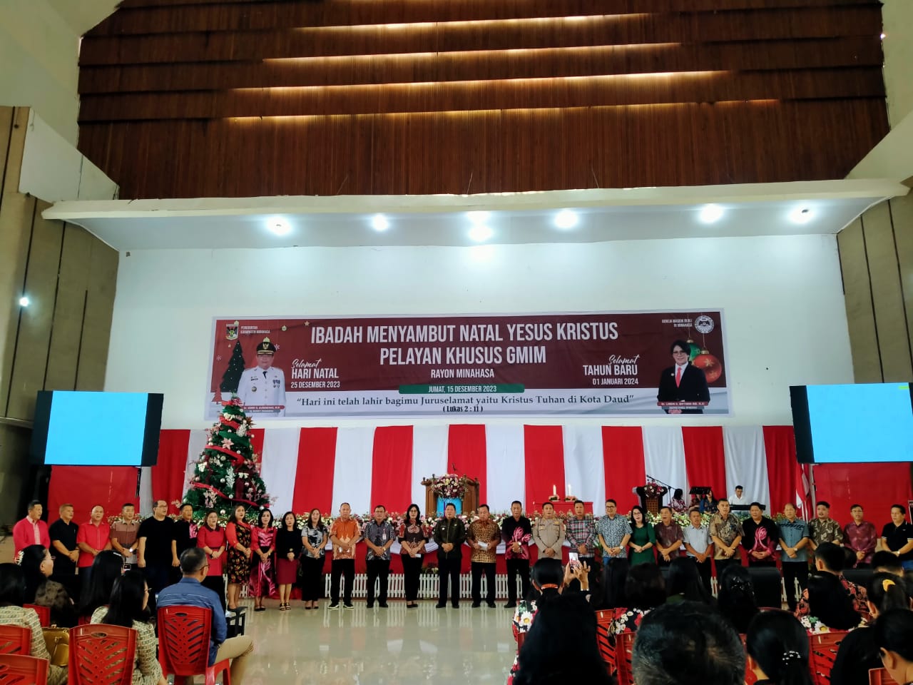 “Atas nama pemerintah kabupaten minahasa menyampaikan selamat Natal 25 Desember 2023 dan selamat menyongsong Tahun baru 1 Januari 2024 ditahun yang akan datang.