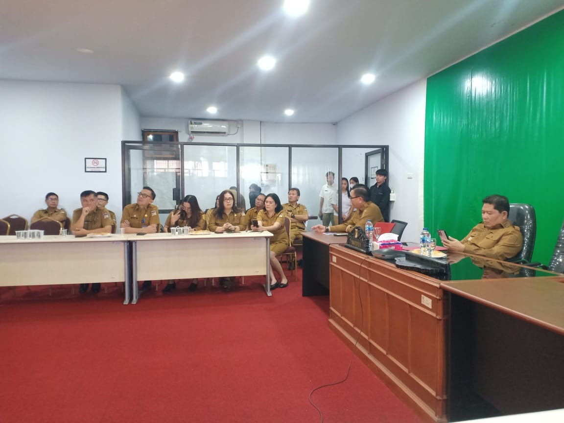 Dalam Rakoor Tersebut diikuti oleh Penjabat Bupati Minahasa Dr. Jemmy Stani Kumendong M.Si, yang bertempat di Ruangan Minahasa Command Center Kantor Bupati Minahasa.