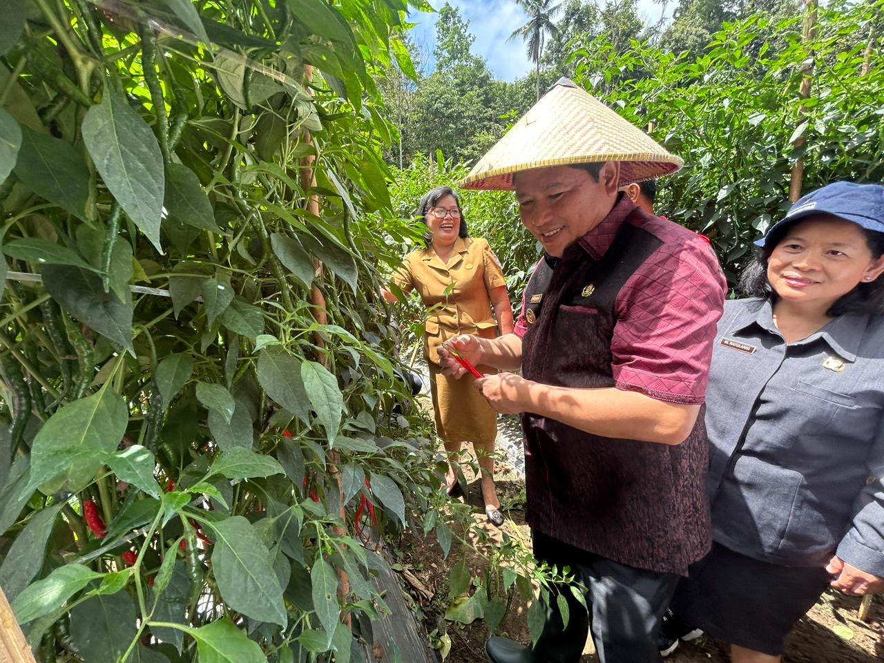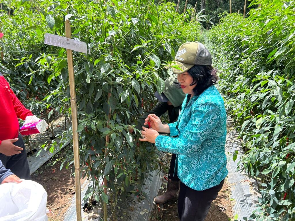 Channelindo.com, MINAHASA – Pj Bupati Minahasa Dr Jemmy S Kumendong MSi bersama Ketua TP-PKK Kabupaten Minahasa Ny. Djeneke Kumendong-Onibala, SH, MSA melakukan panen cabe merah keriting di Desa Tonsea Lama Kecamatan Tondano Timur Kabupaten Minahasa, Senin 20/5/2024.