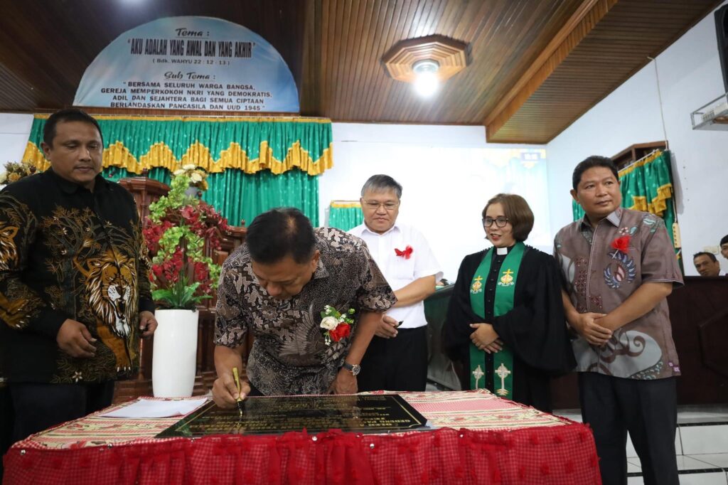 Channelindo.com, MINAHASA – Penjabat Bupati Minahasa Pnt. Dr. Jemmy Stani Kumendong, M.Si Bersama Sekretaris Daerah Kabupaten Minahasa Pnt. Dr. Lynda D. Watania, MM, M.Si, mendampingi Gubernur Sulawesi Utara Prof. Dr.( H.C) Olly Dondokambey, SE dalam Ibadah Pentahbisan Pastori 3 Gereja GMIM Eben Haezer Ampreng bertempat di Pastori 3 GMIM Eben Haezer Ampreng Kecamatan Langowan Barat.