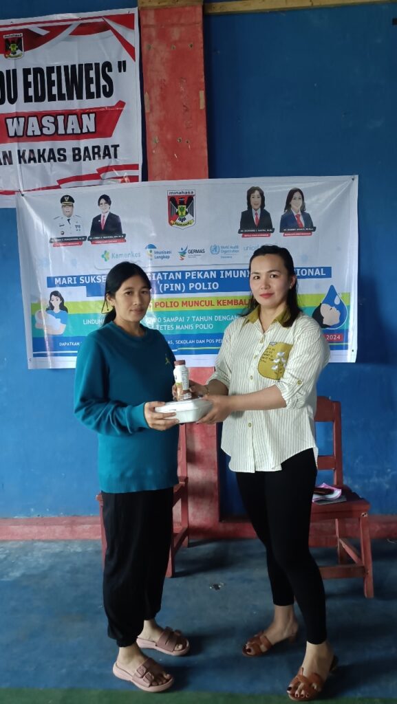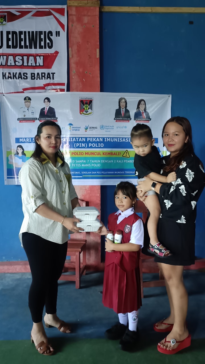 Adapun dalam kegiatan tersebut diberikan makanan bergizi dan makanan tambahan berupa susu. Selain itu dilakukan juga pengukuran tinggi badan, lingkar kepala. Selanjutnya Pekan Imunisasi Nasional (PIN) Yg langsung dari Puskesmas Kakas Barat.