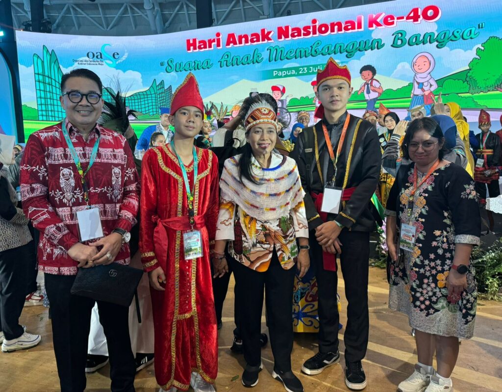 Kegiatan tersebut juga dihadiri Ibu Wury Ma’ruf Amin, Menteri Dalam Negeri Tito Karnavian, Menteri PPPA Bintang Puspayoga, Menteri Kesehatan Budi Gunadi Sadikin, Menteri Investasi/Kepala BKPM Bahlil Lahadalia, Menteri Perdagangan Zulkifli Hasan, Panglima TNI Jenderal Agus Subiyanto, Kepala BIN Budi Gunawan, Pj. Gubernur Papua Muhammad Ridwan Rumasukun, Ketua Umum OASE KIM Tri Tito Karnavian bersama jajaran Pengurusnya, serta ribuan Anak Indonesia dari Papua dan utusan semua Provinsi di Indonesia. (Bamz)