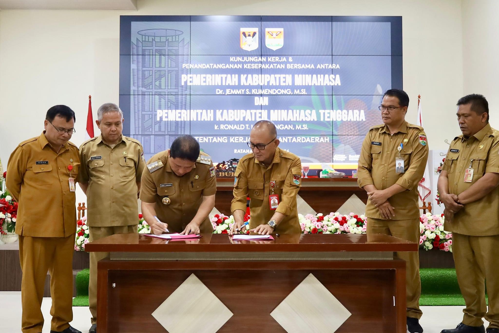 Selain kunjungan kerja, Pemerintah Kabupaten Minahasa melakukan penandatanganan perjanjian kerjasama antar daerah dalam rangka pendayagunaan potensi Daerah dengan Kabupaten Minahasa tenggara (Mitra) Bertempat Di Kantor Bupati Minahasa Tenggara