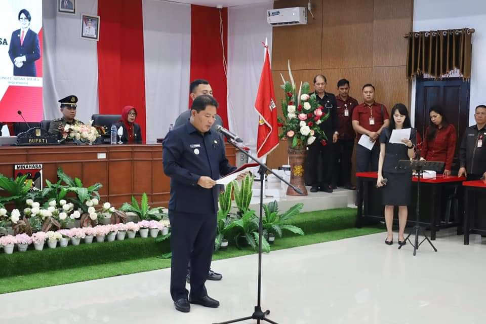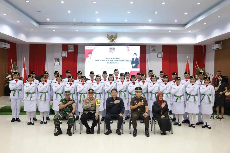Acara pengukuhan Paskibraka tahun 2024 itu digelar di Ruang Sidang Kantor Bupati Minahasa, Tondano, Kamis 15/8/2024.