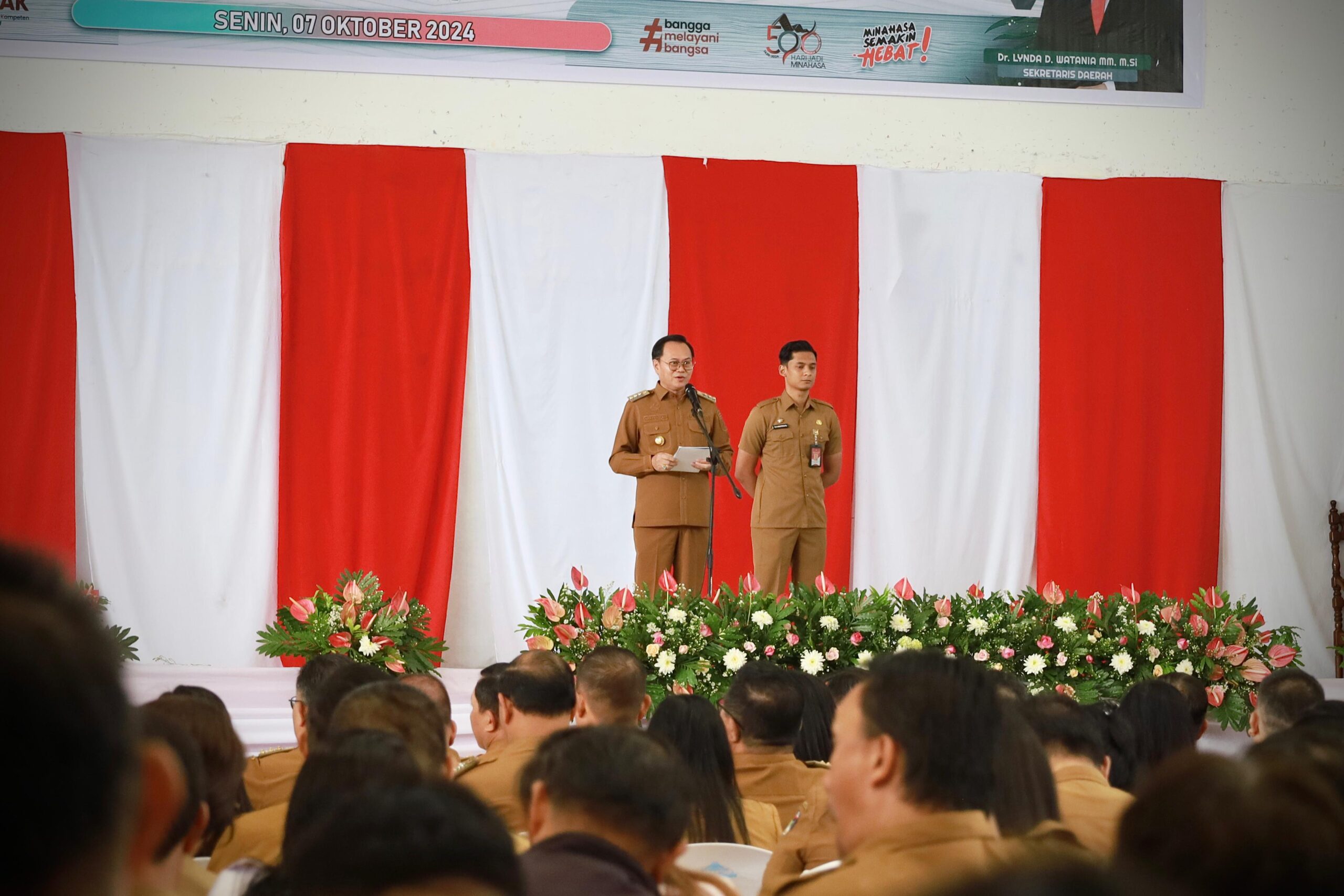 Turut hadir, Asisten 1, Asisten II, Asisten III, Para Kadis, Kaban, Kabag, serta segenap Jajaran ASN dan THL Pemkab Minahasa.
