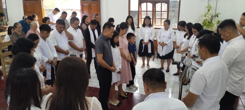 Selain beribadah bersama, Keluarga Ronald Kandoli-Antou juga didoakan Pengutusan oleh para hamba-hamba Tuhan di Jemaat Humilir Wawali Pasan.