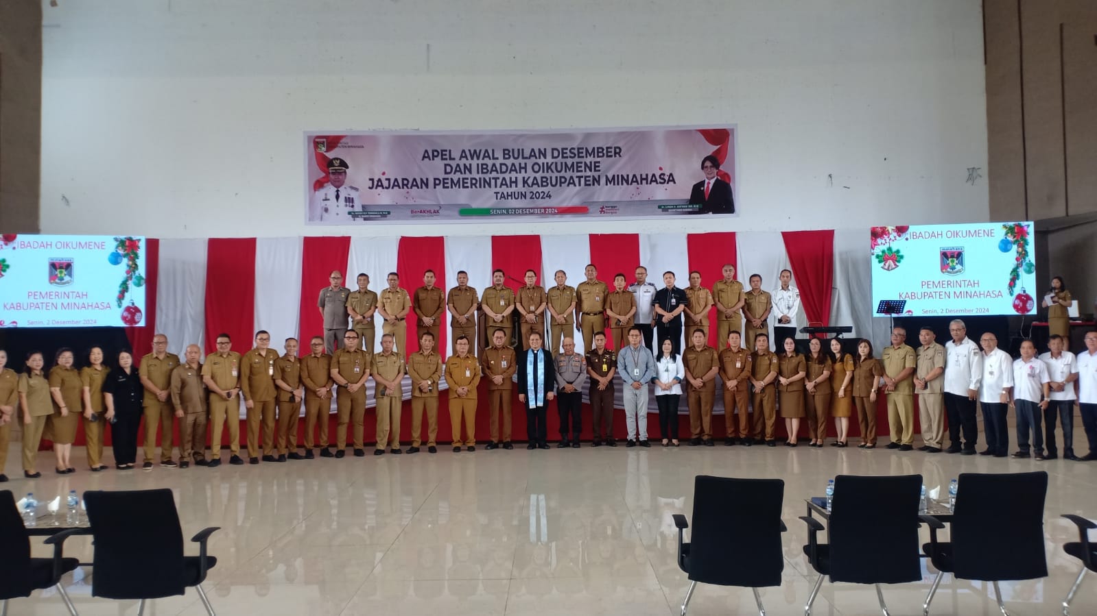 Channelindo.com, MINAHASA – Pemerintah Kabupaten Minahasa menggelar apel dan ibadah oikumene di awal bulan desember, di Gedung Wale Ne Tou, Tondano, Senin 2/12/2024.