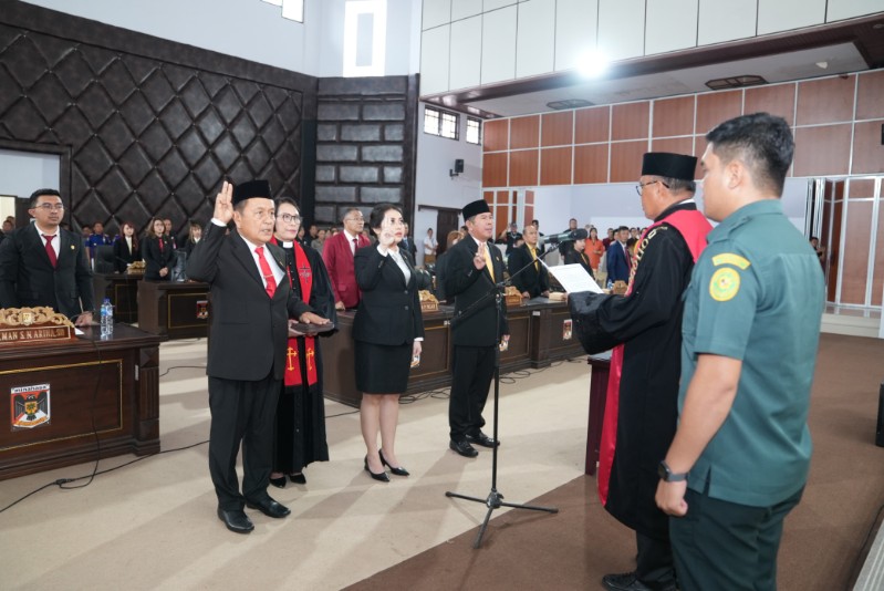 Mereka yang diambil sumpah dan janji yaitu Ketua Robby Longkutoy, Wakil Ketua Putri Pontororing dan Wakil Ketua Adri Kamasi.