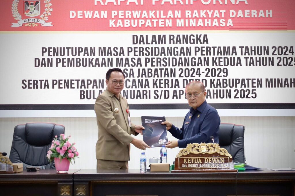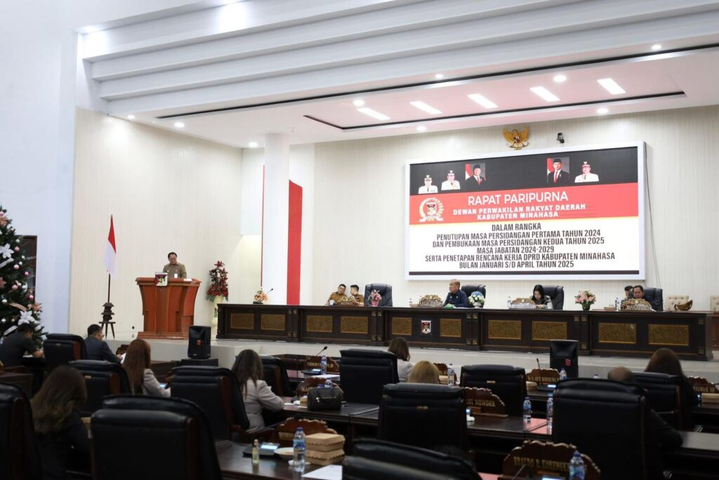 Channelindo.com, MINAHASA – DPRD Kabupaten Minahasa menggelar Rapat Paripurna dalam rangka penutupan masa persidangan pertama tahun 2024 dan pembukaan masa persidangan kedua tahun 2025 masa jabatan 2024-2029, serta penerapan rencana kerja DPRD Minahasa bulan Januari sampai dengan April 2025, Senin 6/1/2025.