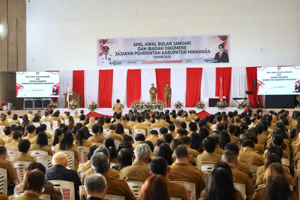 Channelindo.com, MINAHASA – Pemerintah Kabupaten Minahasa menggelar apel kerja awal tahun 2025. Kegiatan tersebut dipimpin oleh Penjabat Bupati Minahasa, Dr. Noudy R.P. Tendean, SIP, MSi, di Wale Ne Tou Tondano, Senin 6/1/2025.