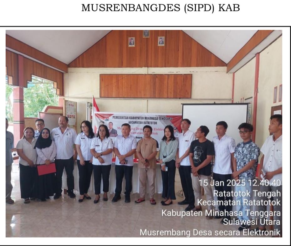 Channelindo.com, RATATOTOK – Pemerintah Desa Ratatotok, Kecamatan Ratatotok, Kabupaten Minahasa Tenggara (Mitra) menyelenggarakan Musyawarah Rencana Pembangunan Desa (Musrembangdes) dengan sistem aplikasi SIPD, Rabu 15 Januari 2025.