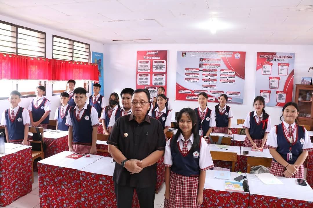 Channelindo.com, MINAHASA – Bupati Minahasa Robby Dondokambey, S.Si, MAP, memantau proses pembelajaran siswa, kompetensi guru, serta sarana dan prasarana di SMP Negeri 4 Tondano, Kamis (10/4).