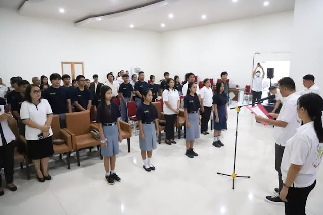 Channelindo.com, MITRA – Bupati Minahasa Tenggara (Mitra) Ronald Kandoli, didampingi Ketua TP-PKK, Ny. Stefa Antou, mengukuhkan Forum Anak Daerah Kabupaten Minahasa Tenggara Tahun 2025 di Kantor Bupati Rabu 21/5/25.