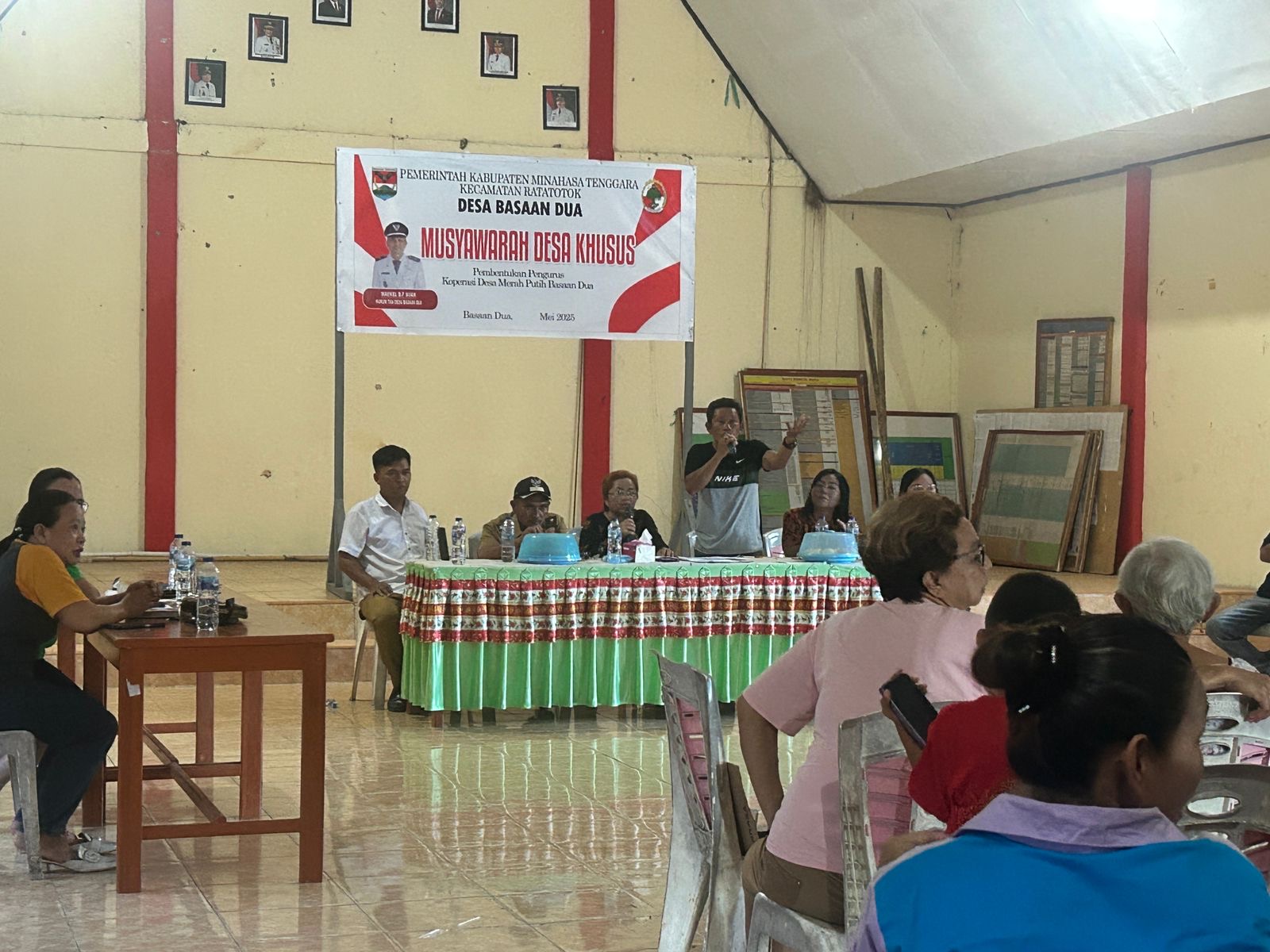 Hukum Tua Desa Basaan Dua Maekel D F Suak SE diselah pembentukan pengurus koperasi kepada media ini mengatakan, dirinya sangat bersyukur kegiatan pembentukan pengurus koperasi merah putih di Desa Basaan Dua boleh berjalan dengan baik.