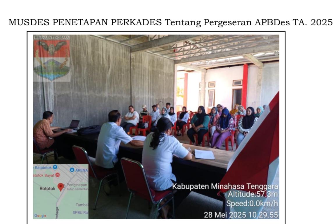 Pemdes Ratatotok Gelar Musdes Penetapan Perkades Terkait Pergeseran APBDes TA 2025