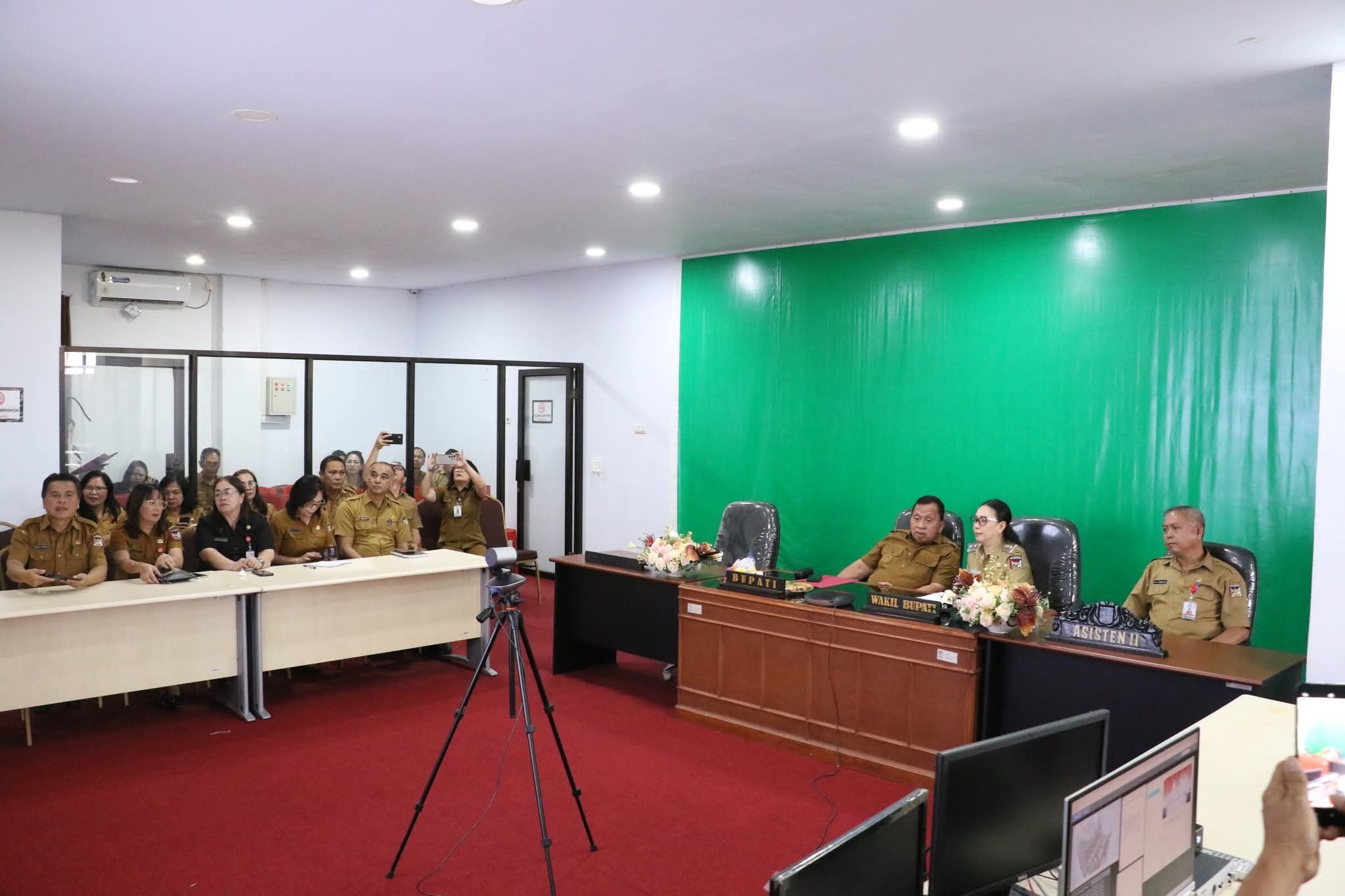 Channelindo.com, MINAHASA – Bupati Minahasa Robby Dondokambey, S.Si., M.AP, bersama Wakil Bupati Minahasa Vanda Sarundajang, S.S., turut serta dalam Rapat Koordinasi Pengendalian Inflasi yang dipimpin oleh Sekretaris Jenderal Kementerian Dalam Negeri Republik Indonesia, Komjen Pol. Drs. Tomsi Tohir, M.Si., melalui Zoom Meeting. Rapat berlangsung di Ruang Command Center Kantor Bupati Minahasa pada Senin, (23/6/25)
