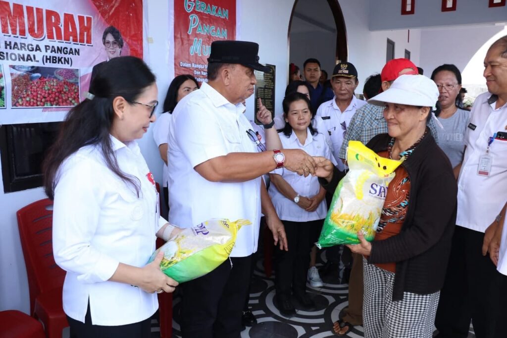 Kegiatan ini dirangkaikan dengan Gerakan Pangan Murah yang digelar di Pasar Tanawangko dan Balai Pertemuan Umum (BPU) Borgo, Kecamatan Tombariri, Rabu (10/9/25).