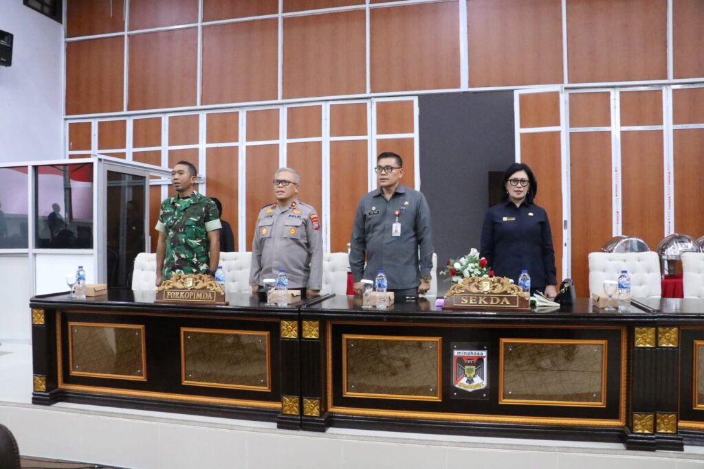 Turut hadir Sekretaris Daerah Minahasa Dr. Lynda D. Watania, Forkopimda, anggota DPRD, dan kepala Organisasi Perangkat Daerah (OPD) di lingkungan Pemkab Minahasa.